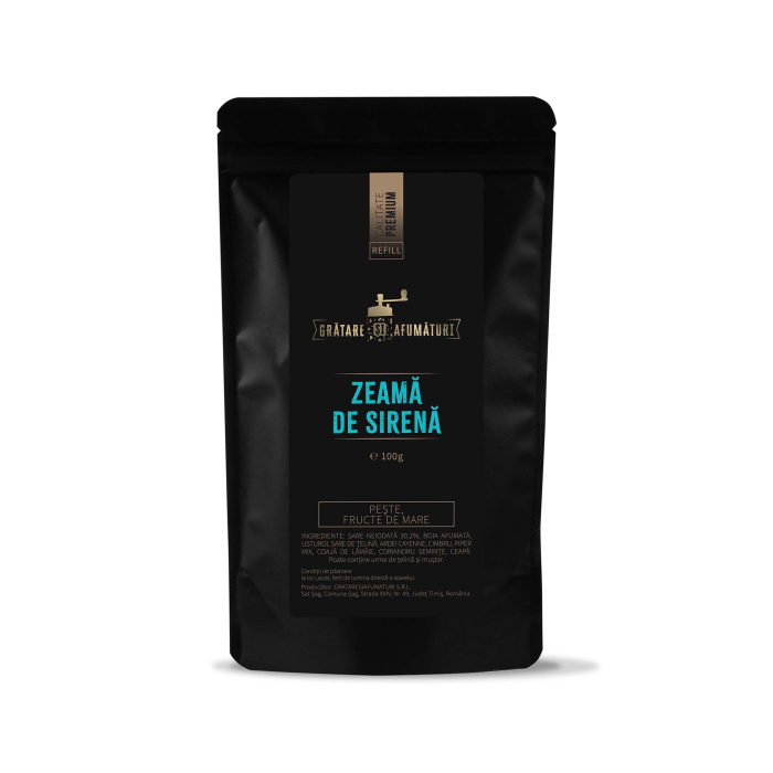 Zeama de Sirena – Condimentul mistic care iti scufunda papilele gustative intr-o mare de arome fermecatoare! Obtinut din adancurile celor mai ascunse retete, acest mix aduce un val de prospetime si magie in orice preparat. Perfect pentru peste, fructe de mare, sau orice mancare care are nevoie de un strop de vrajeala marina. O simpla presarare si o sa te simti de parca ai lua cina pe un recif tropical, cu o sirena care iti canta in timp ce frigi pestele! Atentie: s-ar putea sa auzi cantece de sirena... sau doar stomacul tau care cere mai mult.